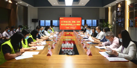 近日,江門市工青婦主要負責同志深入鶴山市企業(yè)和員工中宣講黨的二十大精神及檢查企業(yè)疫情防控工作,與鶴山市福維德智能設備有限公司一線職工、青年、婦女代表面對面溝通交流,介紹黨的二十大作出的新部署新舉措,對各級工青婦組織做好黨的二十大精神宣講宣傳提出要求。江門市人大常委會副主任、市總工會主席陳霞,江門市總工會黨組書記、常務副主席蔡漢文,團江門市委書記林沛華,江門市婦聯(lián)主席林露華參加活動。